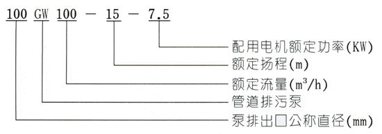 四、GW型无堵塞管道排污泵型号意义五、GW型无堵塞管道排污泵性能参数: